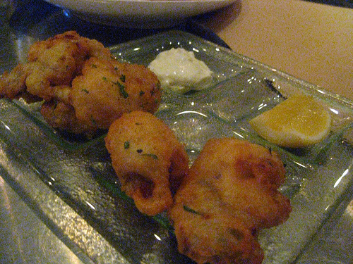My favorite of the happy hour menu we tried were the fried oysters. I watched a guy shuck oysters in front of me so I was feeling pretty happy (except for the occasional whiff of really briny oysters that drifted my way).