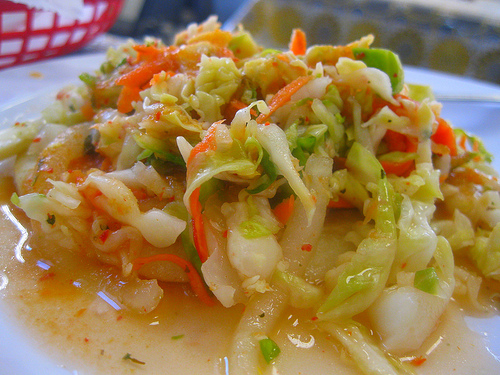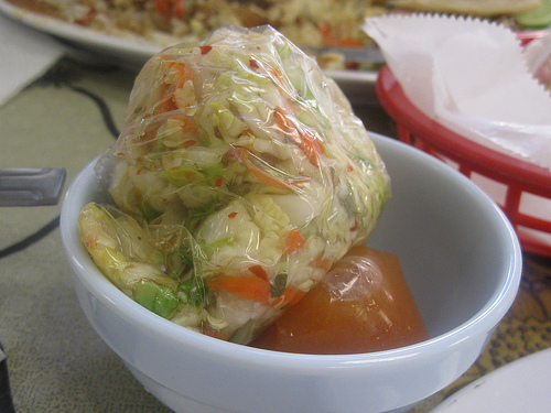 When my pupusa arrived, it came with curtido (the slaw) and salsa in little baggies. I generally love as much curtido as I can get but I accidentally squirted too much salsa on creating quite the soggy mess.