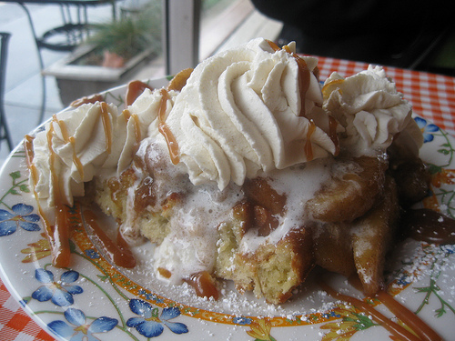 Two years ago when I visited the Waffle Window for the first time, I had a savory waffle. I wish I did the same last week but went with the rainy day waffle which had blueberry compote, a raspberry coulis and a lemon panna cotta and decorated with pieces of persimmon. Besides that, there was lots of whipped cream. As a person not very fond of sweet breakfasts, this was way too much. It left my waffle soggy and I ended up eating just the waffle after I pushed off all that stuff. Carina found her apple waffle overwhelming as well.