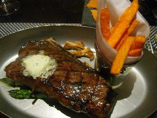 But for some reason bone-in is not the description I would have used for this steak. When I think of bone-in, I think of a much thicker chop. I know NY strip is just one half of a T-bone or Porter house steak but I probably wouldn’t have even mentioned the bone then. At least, not as a selling point.
