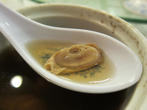 Eddie Lin of Deep End Dining and Val Herrera of Trippy Food must have read my Feng Mao post and thought this girl needed some pizzle. Pizzle is the innocuous term for penis. Specifically bull’s penis. I had successfully managed to avoid eating it at Feng Mao and now I was faced with this bowl steaming in front of me at Hop Woo.
