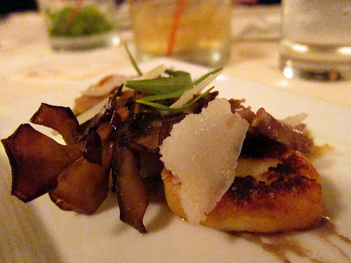 The pork belly was paired with a 2006 August Briggs Charbono from Napa Valley. Charbono is apparently the same grape as Bonarda. Bonarda is very common and practically the national wine in Argentina next to Malbec. This wine was deeper and had the slightest bit of funk which went well with the pork.