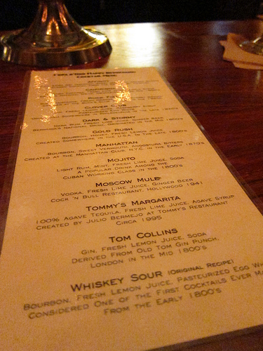 On Mondays, Copa d’Oro in Santa Monica features an all-night happy hour.What I like about the cocktails at Copa d’Oro (besides the hot bartenders mixing them), are that they are classic libations.