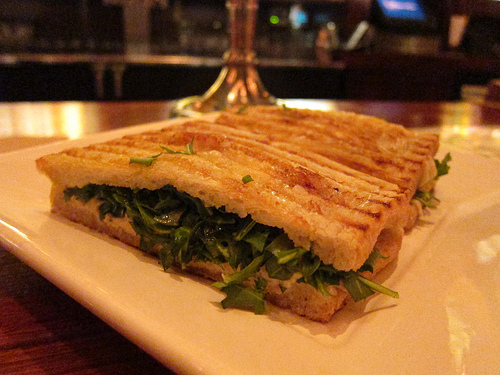 It had been hours since lunch, ice cream and happy hour stop #1 (ha!) so I decided to get a light snack. The tuna and arugula panini seemed like a good bet and it was. Full of arugula, which cut the fresh tuna salad, this enabled me to enjoy another cocktail.