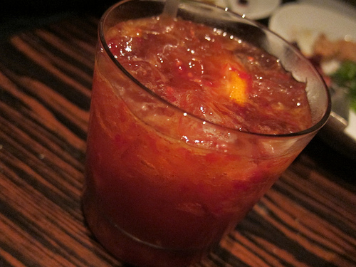 What I love about my fine dining partner is we both love bourbon. We ordered the two bourbon cocktails on the menu and she ended up liking my Chamomile (Woodford Reserve, organic chamomile, St. Germain, lemon, agave) more than I did and I happily accepted her blood orange old fashioned (Woodford Reserve, Red Blossom Farm blood oranges, raspberries, agave, bitters).