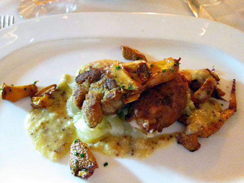 I decided to get the crispy sweetbreads. I’ve been getting into sweetbreads lately and I love whole-grain mustard. I was surprised what a big portion this was for a starter. The chanterelles in the dish were great.