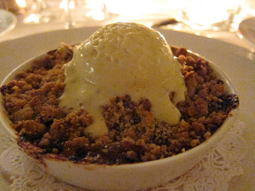 Besides the wonderful ice cream and sorbets this evening, my favorite desserts were the Valhrona chocolate cake and the marscapone turnover. The farmers’ market apple crisp made use of the wonderful produce from available from the Santa Monica farmers’ markets.