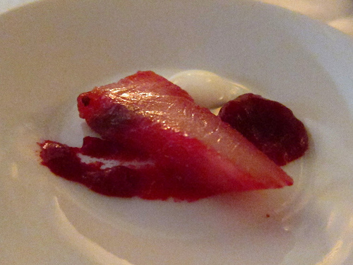 For the amuse bouche, we were given beet-cured hamachi.