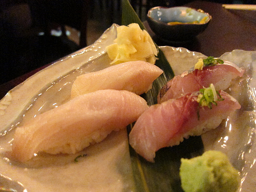 Fearing crowds, I made a reservation and off we went. We were early enough to partake in happy hour which they call the Roppongi Hour. We ordered the mini gyutan and all the rolls (spicy tuna, spicy albacore, spicy salmon) as well as a cold sake. The food items are $5 and the drinks are $3 at Happy Hour.