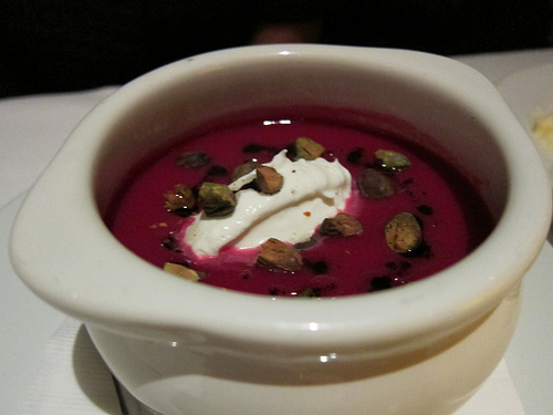 I never had the borscht from Petrossian where Chef Ben was previously but if I had known about it, I definitely would have ordered it! This beet gazpacho is similar. My friend didn’t even like beets and ate this up.