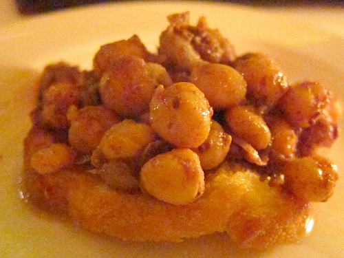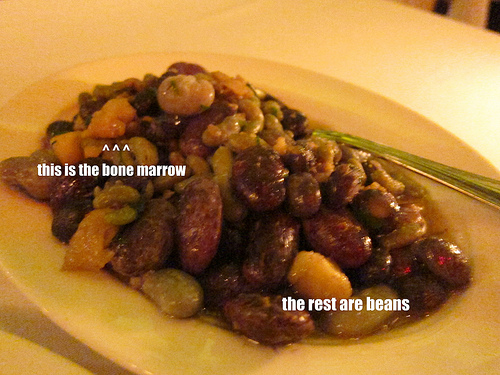 I don’t think we picked the proper contorni (vegetable) to go with our grilled pork chop but we were waylaid by the idea of bone marrow on the beans. I was imagining something like Lazy Ox’s fried bone marrow but it turned out to be tiny scooped out bits of marrow on the beans. If you didn’t look closely in the dim light, you could have missed it.