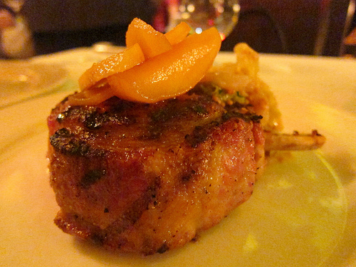 The pork chop was great but I avoided the horseradished infused apple slices. Wow, they were spicy. I was glad I had my glass of Lambrusco to round out the meal.