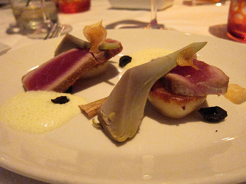 Our first entree was the seared ahi tuna. Served with bits of olive, a couple of nice chunks of artichoke and really wonderful potatoes, this was a nice light dish.