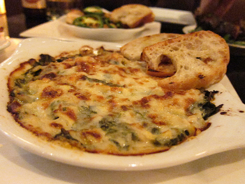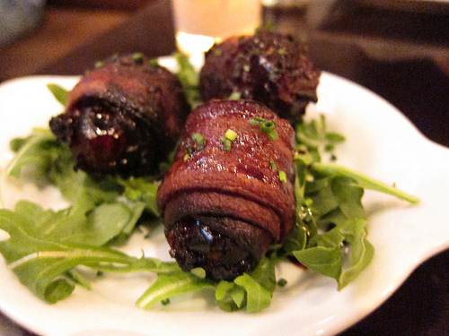 We ordered a few things from the happy hour menu as well as their regular menu. I enjoyed the Mexican shrimp with salsa verde though I discarded the sliced chile peppers. I do like spicy but I also wanted to taste everything else without lingering heat. Vixen wanted the bacon-wrapped dates and truffle fries while I tried to get a little healthy with the Swiss chard with artichoke gratin.