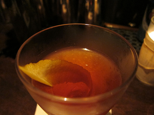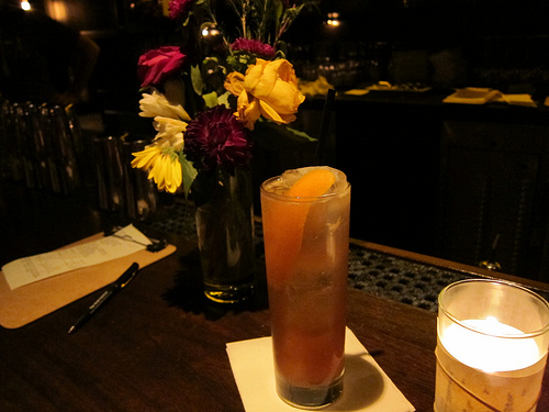 The cocktail program was revamped by a couple of guys from New York’s Death and Co; David Kaplan (co-owner of D&C) and Alex Day (former bartender at D&C) last Fall. The news made a big splash in LA cocktailian circles. I very much remember my birthday party where screaming barely-legal college kids milling around O Bar and was thankful I had the upstairs lounge. Now the bar is a more quiet, respectable watering hole for boozehounds, um, enthusiasts like me.