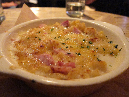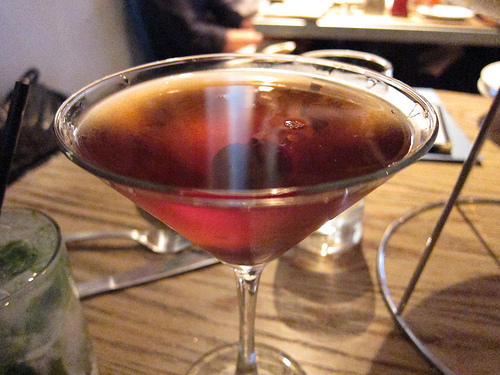 We chose the Brussel sprout “leaves” from the specials side and the mac & cheese from the regular menu. The Brussel sprouts are trimmed at the bottom to release the tightly furled leaves and then cooked simply with garlic, shallot and lemon. It’s a great side dish with our fish. We couldn’t leave without trying the mac & cheese which Delphine makes with cured ham, sweet onions and Gruyere. It’s very modern and could be eaten as a meal, with some drinks of course. I liked the Manhattan.
