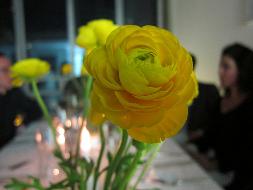 It’s called the White Room because her place is mostly decorated in white with touches of silver. I loved how vibrant these yellow flowers were and the centerpieces just popped against the stark room.