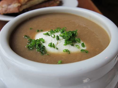 I decided to also get the mushroom soup with goat cheese. The cheese acted a bit like cream fraiche, dissolving and creating a richer soup.