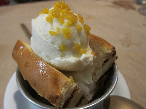We thought we were too full for dessert but our server convinced we had to try their ice cream sandwich. The sticky rice is served between toasted sweet roll with coconut ice cream and mung beans. It was fantastic. Light, not too sweet and a brilliant way to end our meal.