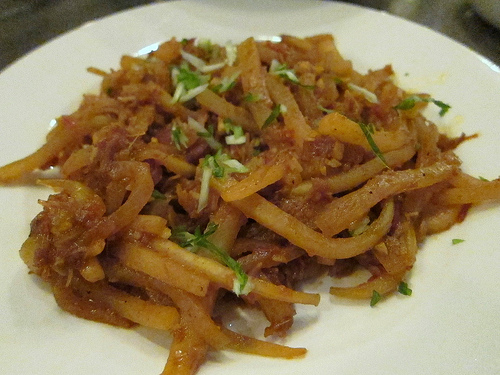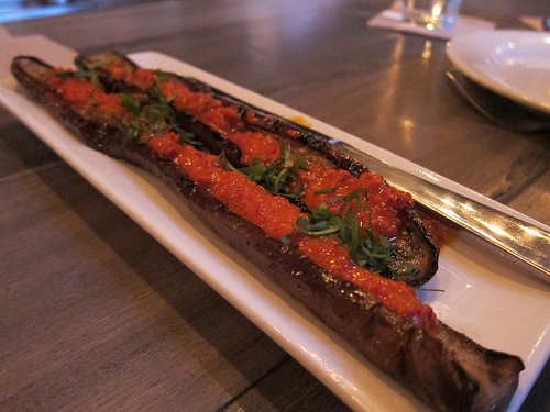 After numbing my mouth with the chili sauce from the grilled eggplant, I wisely ate the rest of my food without any hot sauce. The lamb belly’s fattiness was quite wonderful to help cool my burning mouth.