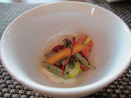 Chef de Cusine Michael Fiorelli impresses with his bar bites menu where I loved the pickled veggies that went with the crispy pig ears. I was more than happy when the restaurant sent out the same pickled vegetables with a bit of creme fraiche as our amuse bouche for dinner.
