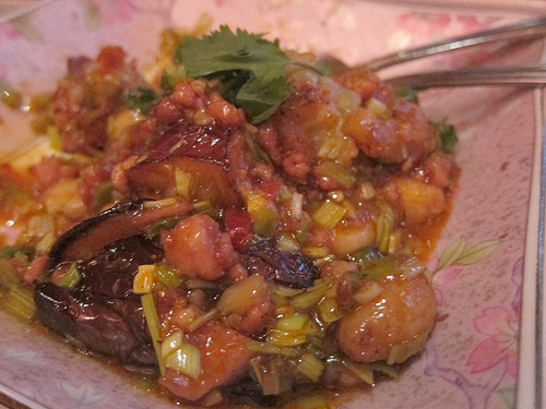 Next we had the eggplant dish with whole cloves of garlic. Throughout the night, I felt Chef Yujean was taking us to different parts of China and this dish reminded me a bit of Southern China and in particular Sichuan. Though it didn’t have the extreme spice of Sichuan dishes, the eggplant was expertly cooked.