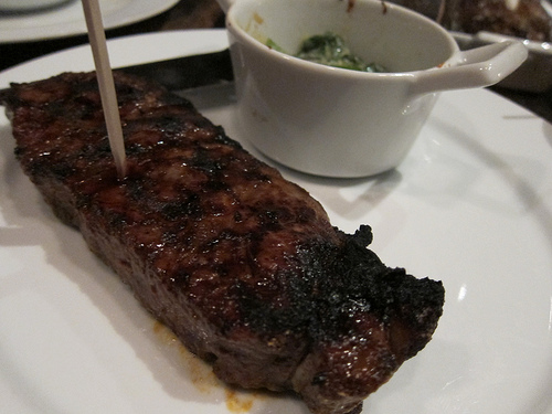 On the other hand, the New York strip was cooked medium rare and was bursting with meaty juices. It was my favorite of the night. We got creamed spinach with it.