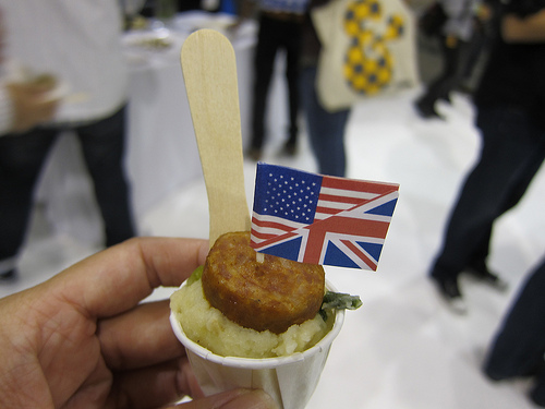 Over at Bangers & Smashed, I was laughing over the sign “Keep Calm, Harry is still single.” With cut-outs of Big Ben, the London Bridge and a lady in a rockin’ British flag dress (complete with white boots!), it was a mod-ol’ time at this booth. And it’s a bonus the food was equally enjoyable.