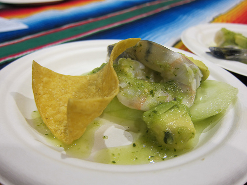 At the next booth, Malo/ Mas Malo brought their aguachile shrimp. The shrimp was a generous size, doused with a chile sauce that helped cook the raw shrimp and topped with cubed avocado. This screamed summer to me.