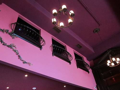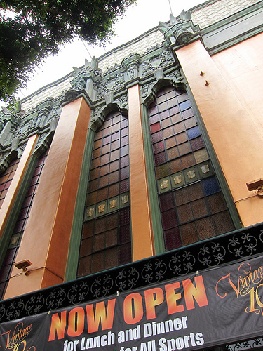 The Belasco next to the Mayan Theatre has rich history. Began as a live theatre, it eventually became a church and then abandoned (except for occasional filming) until now. The plans are to re-open it as a theatre (and lately there have been private events there) and three cafes and restaurants. Vintage 10-Fifty is the first to open of the three. Grill Fresco will be the sit-down seafood restaurant and Cafe Belasco is supposed to be a more casual breakfast and lunch cafe.