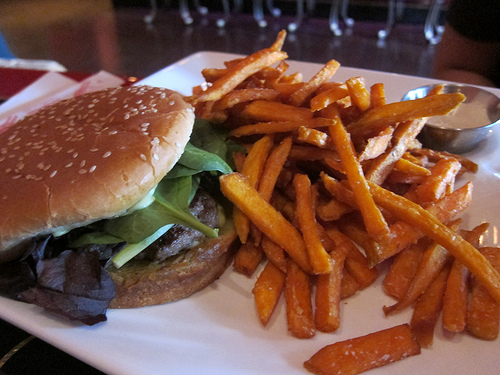 My friend had the 10-Fifty bacon burger. There aren’t actually strips of bacon in this burger but rather the bacon is crumbled into the ground beef patty.