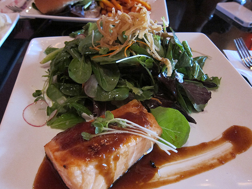 I had the seared salmon salad. The sauce was supposed to be miso butter but came out suspiciously like teriyaki. Which wasn’t bad but not quite what I was expecting. We generally liked our food though.