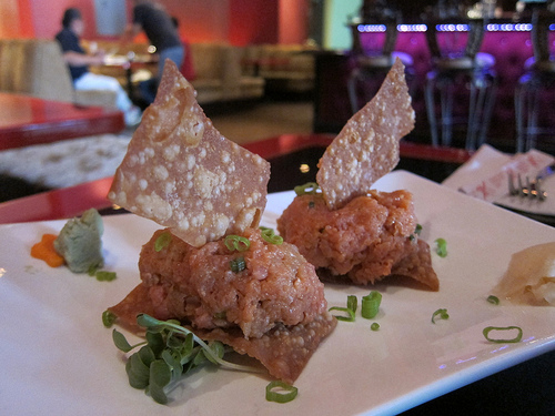 We started with the spicy tuna that came with wonton chips. I have to say the size of the scoops were generous but somewhat unwieldy to eat. I would have liked a few more chips.