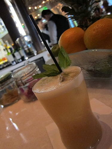 After K requested “sweet,” I went with my usual “bitter.” However, I didn’t specify anything else. George made me his spin on a Negroni. The slight bitterness from the Campari woke me up and eased me into what would turn into a long night. I should perhaps mention this was a Saturday night and I hadn’t had any booze since Wednesday. Oh, let’s not forget I had 3 hours of sleep that day. Yay?