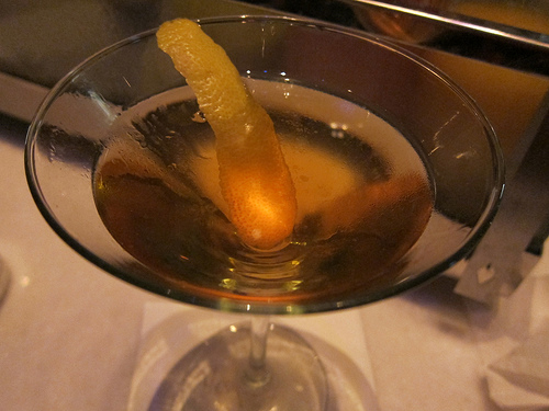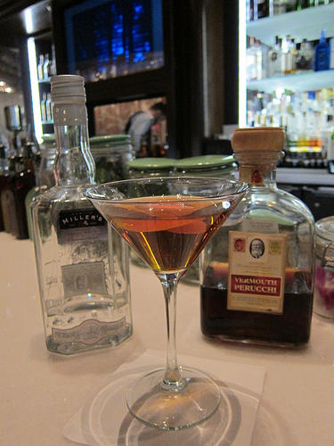 Next up, I was introduced to a new vermouth. This is Vermouth Perucchi from Spain. This cocktail was also made with Miller’s Gin. Notice the nearly empty bottle– I swear I didn’t drink it all!