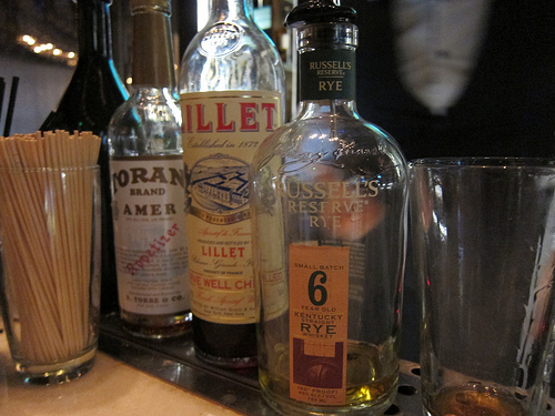 Hey, what do you know? I can tell you what’s in this cocktail! George used Russell’s Rye, Lillet and Amer Torani. My kind of cocktail.
