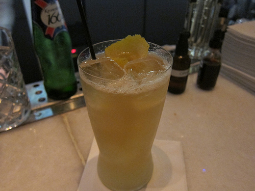 And we’re back at the Vesper. As mentioned in my Pizzaria post, I decided to rejoin the fine folks at Vesper for one last cocktail. George handed me a beer cocktail since he saw I was having my much needed pizza.