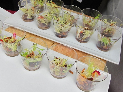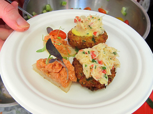 The next round were Alaska king crab crysal chive dumplings from Chef Sara Johannes at WP24. I managed to score one of the last two. I also tried the lamb merguez from Comme Ca and was talked into La Seine’s coconut jalepeno stuffed with albacore, salmon, yellowtail and topped with aioli. People were calling it neo-sushi.