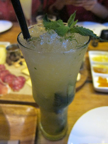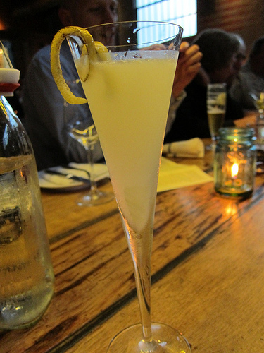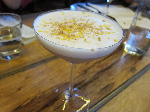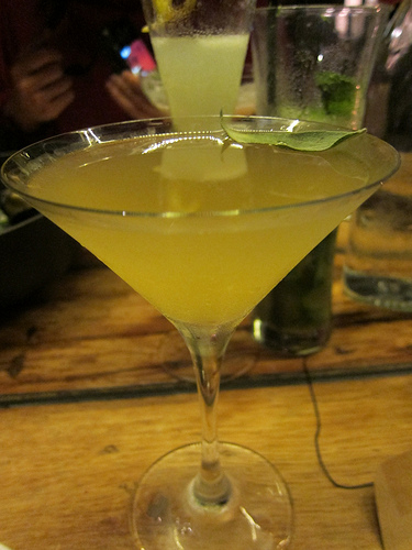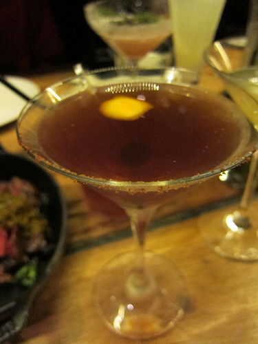 The classic Corpse Reviver comes back from the past as the Dirge with Old Raj gin, Lillet, lemon and absinthe. I thought the “dirty” lemon twist was a nice touch on this wake-up-the-dead cocktail.