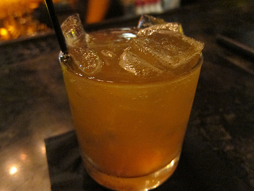 I thought the drink was all right. Nothing terribly compelling about it. With all that fruit juice, it just became “sweet.” I couldn’t taste any of the Aperol in it. I wondered where Joseph Brooke, formerly of the Edison, was as the buzz surrounding the opening said he created the drinks. Later I would learn from Thirsty in LA’s blog he created only some of the cocktails.