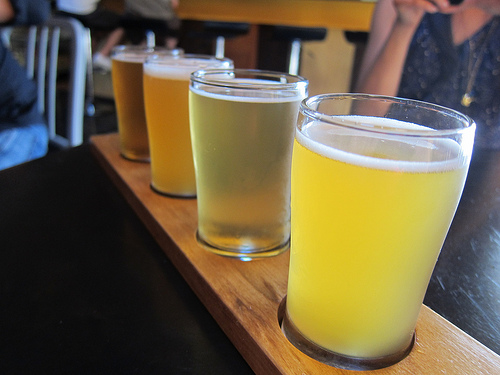 Once inside, the cheery staff quickly got us beer. My friend loves craft beer and went with a flight. I nursed a ginger beer soda brew until I figured out what I wanted. I sat around admiring the beautiful wood paneling.
