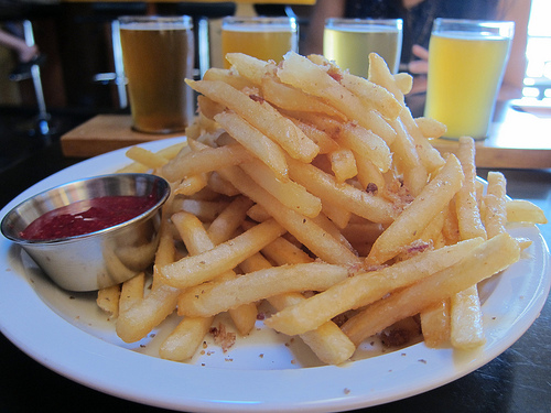 I was bummed to find out they were out of the fried catfish! Ahhhhh, what to do? Wings it is! And duck fat fries. I was drinking beer, I might as well live it up a little.