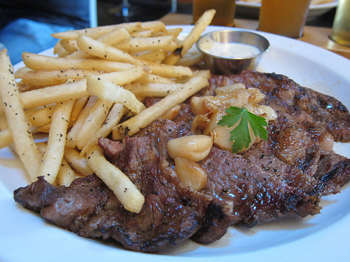 My friend went with a sensible meal of steak frites. The steak was so tender! But after the decadent duck fat fries, we were hard pressed to eat regular fries even with all the great home-made sauces.
