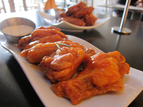 Since I couldn’t decide which hot wings to get, I got both the garlic and rosemary hot wings. Woah, the garlic ones were definitely spicier. I needed beer STAT.