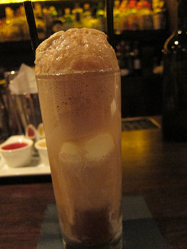 I love how Daniel makes the rootbeer float. He’ll pour the rootbeer down the bar spoon so it follows the groves of the long handle. Then he taps the bottom of the glass to settle the carbonation. Fun!