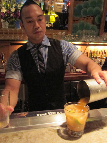As part of Chaya‘s new guest chef series, Marcel Vigneron presented a multi-course meal with Chef Haru at Chaya Brasserie last night in Beverly Hills. Unfortunately, I had dinner plans I couldn’t break so I didn’t get to taste the incredible sounding food. I was bummed but was cheered when I heard Devon Espinosa, Marcel’s bartender on Marcel’s Quantum Kitchen was making drinks at Chaya. Booze? That I can do.