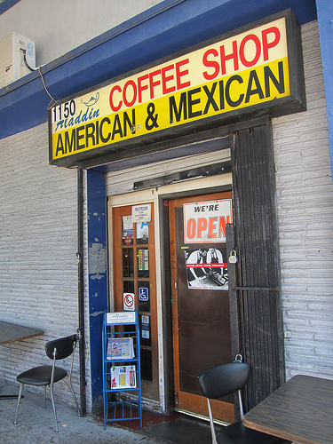 In my quest to find a good affordable lunch around my office in South Park, Downtown Los Angeles, I stumbled upon Aladdin’s Coffee Shop. Owned by Salvadorans for 30+ years, Aladdin’s Coffee Shop serves up a daily buffet of Salvadoran, Mexican and American classics. Some days you may even find food like chow mein. You may also order off the “menu” and the kitchen will try to make it if they have the ingredients.