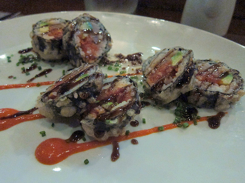 We started with a couple of rolls. La Seine roll sounded appealing with the seared albacore, shishito peppers, jalepenos and chimichurri. Surprisingly it wasn’t very spicy. The tartness of the chimichurri played up the fish very well.