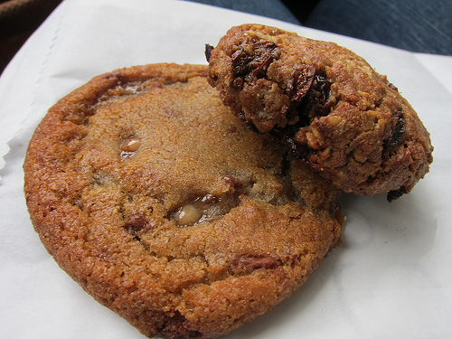 After some enormous tacos from La Taqueria, we headed over to Anthony’s Cookies for a sweet tidbit. I got the oatmeal raisin which was a cute little cookie. I had a taste of Carina‘s toffee chip which wasn’t too sweet. I like some sweets but not the teeth-rotting sort.