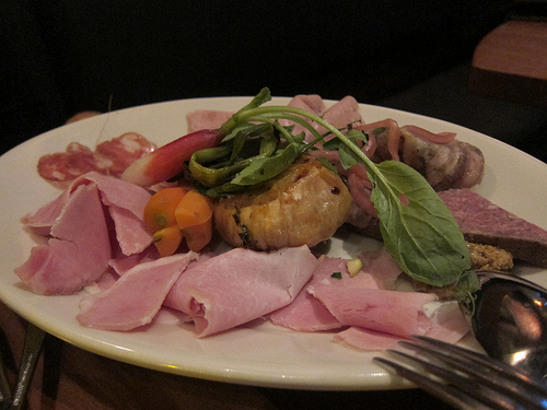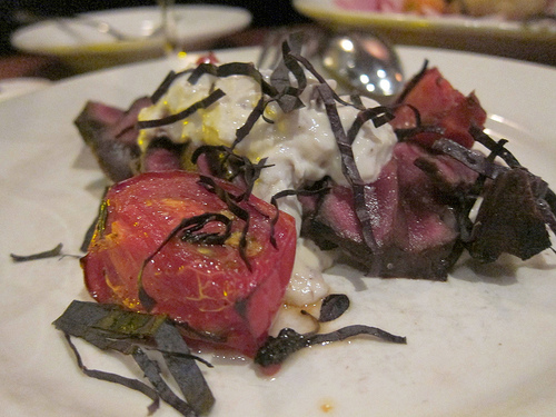 It is the summer of tomatoes for me. I picked out the tomato salad right away because it also had purslane which I love. This was some of the freshest, juiciest tomatoes and best purslane I’ve had. I also enjoyed the roasted tomato in the beef heart dish. While I know it’s tonnato, I think we would have eaten more if it was warm. Then again, maybe not because we had ordered the piglet salumi platter and the little pig made us go whole hog.